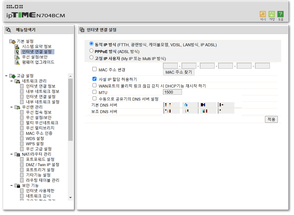 - DHCP 서버 설정 메뉴로 이동합니다.