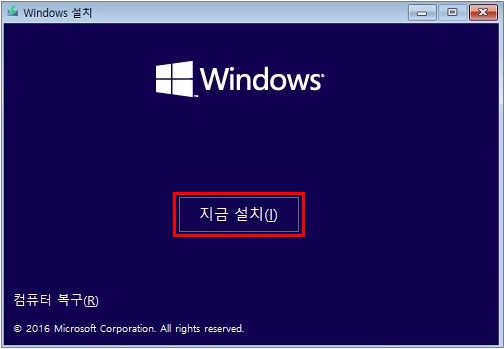 - 언어 및 키보드 설정: 한국어와 기본 입력 방법을 선택하고 [다음]을 클릭한 후 [지금 설치]를 누릅니다.